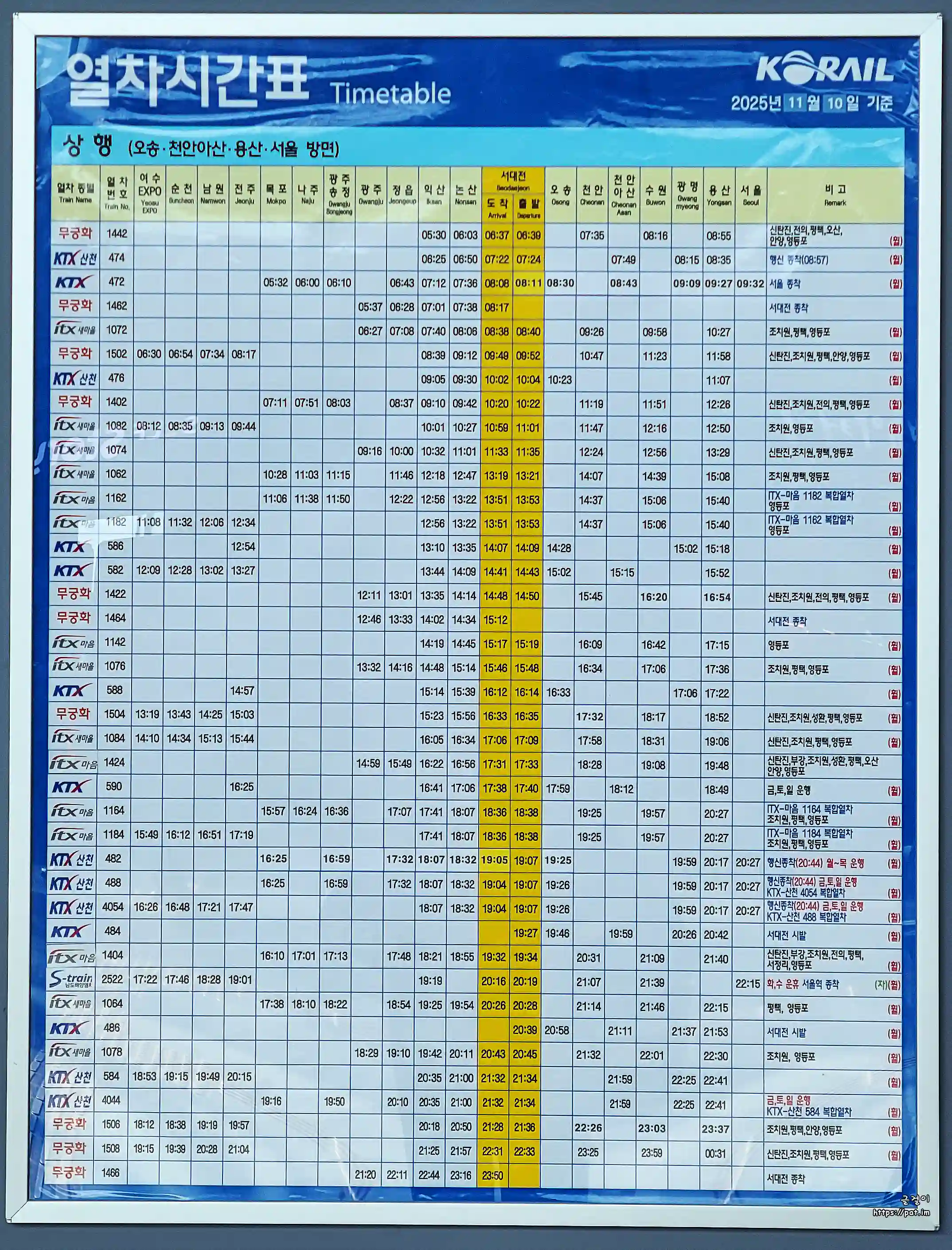 서대전역 열차 시간표 (KTX, 무궁화호, ITX-새마을, ITX-마음, S-train) (2025.11.10~)