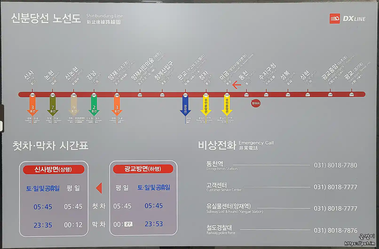 신분당선 동천역의 지하철 열차 시간표와 요금 및 걸리는 시간 등에 관한 간추린 정보입니다.