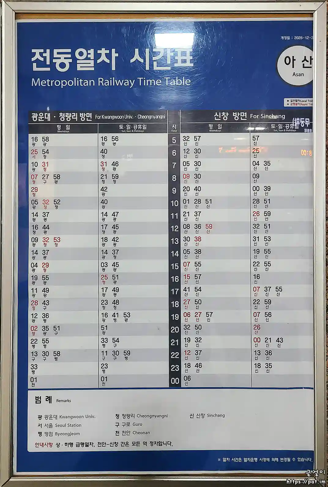 1호선 아산역 급행/일반 전철 시간표 (2025.12.30~)